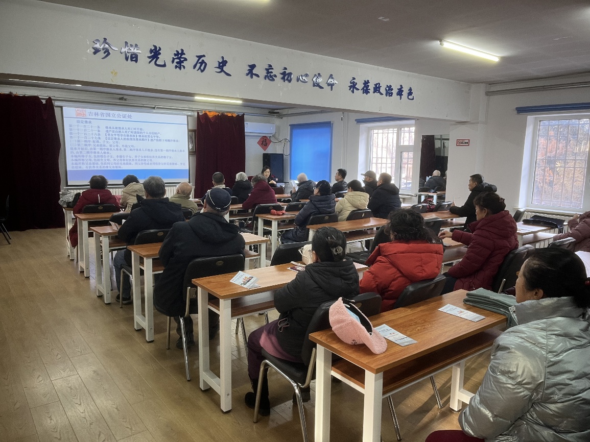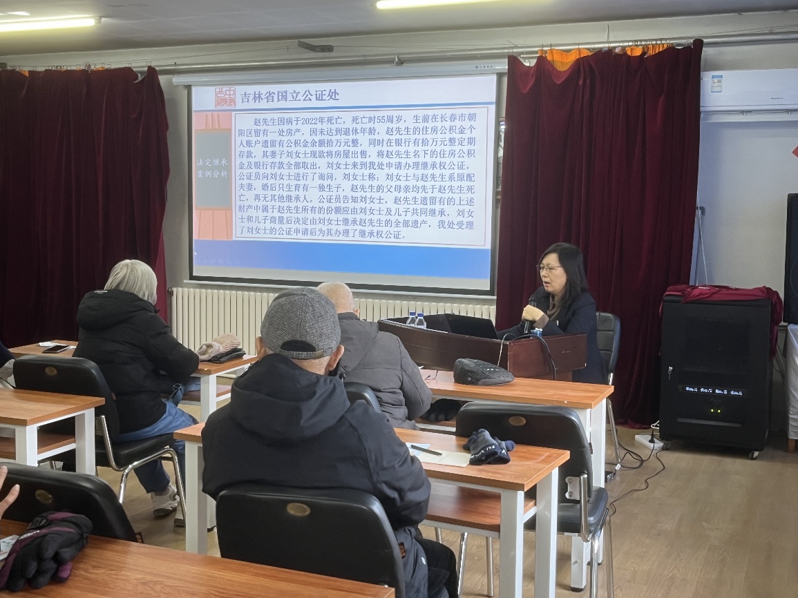 为进一步提高广大离退休职工的公证意识,普及公证知识,满足广大离退休职工公证服务需求,维护老同志们的切身利益,长春光机所离退中心于12月12日邀请长春市国立公证处一级公证员曹新为老同志们进行了公证业务解读专题讲座。此外,离退中心副主任、总党支书记雪伟强主持了2024年度下半年的所情通报及政治学习讲座,活动吸引离退休职工共计40余人参加。