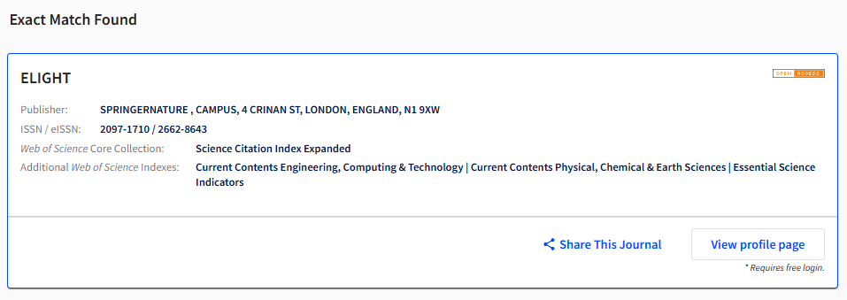 2024年12月,eLight(入选一、二期卓越计划)收到通知:期刊被SCI正式收录,创刊以来所有文章都将收录于SCI数据库(Science Citation Index-Expanded,科学引文索引)。此前,eLight已被ESCI、SCOPUS、EI、DOAJ、GOOGLE SCHOLAR、CSTPCD等20余个国内外权威数据库收录,此次被SCI收录,已基本集齐国际主流权威数据库,进一步凸显了eLight在文章质量、期刊影响力、引证指标以及国际学术声誉方面的出色成绩,也彰显了Light: Science & Applications(一、二期卓越计划领军期刊)衍生姐妹刊的显著成效。