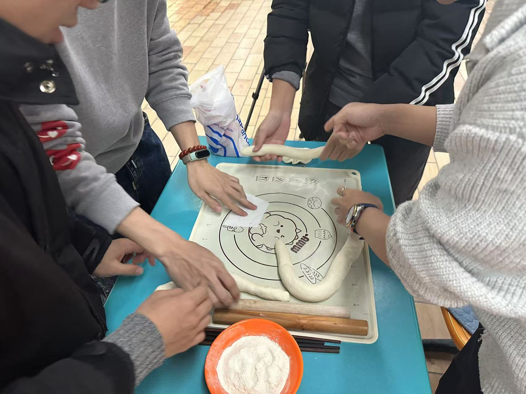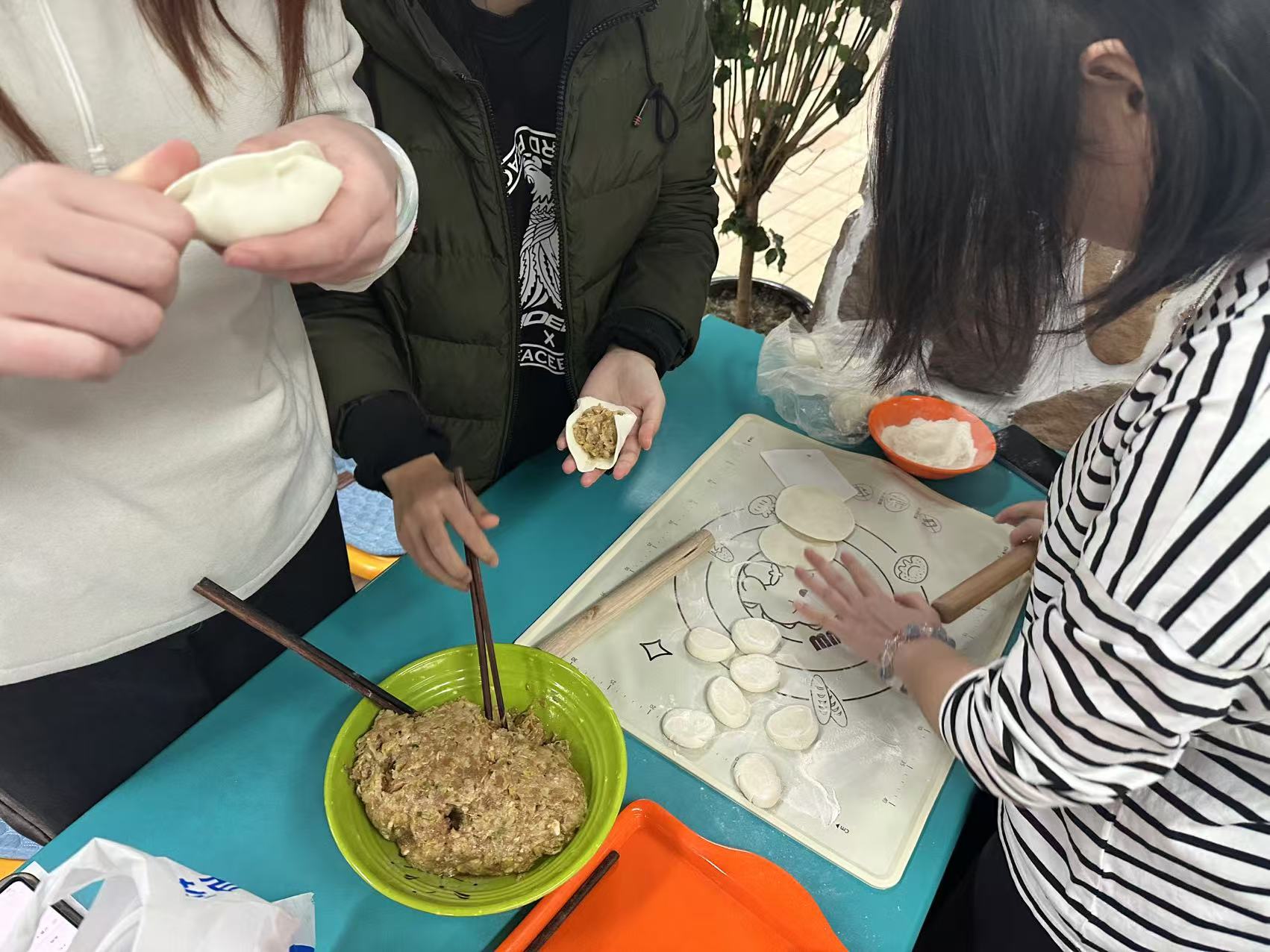一张张桌子上摆满了面粉、馅料和各种工具,同学们纷纷挽起袖子,大展身手。有的同学手法娴熟,包出的饺子精致美观;有的同学虽然略显生疏,但在无数“师傅”的现场指导下也逐渐掌握了技巧,包出的饺子有模有样。擀面皮的“嗒嗒”声和着欢声笑语,交织成一曲温馨的乐章。经食堂工作人员帮忙加工烹煮后,一盘盘热气腾腾的饺子被端上餐桌,大家围坐一起,分享着这份来自节日的祝福与亲手劳动带来的喜悦。那一个个令人惊喜、感动、难忘的瞬间,汇聚成每一个人心中美好的回忆。