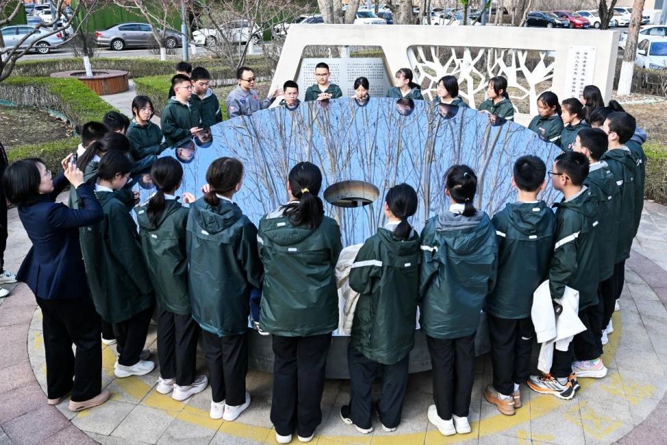 活动伊始,本所博士研究生刘斌做了题为《赓续航天精神 寻梦星辰大海》的科普报告,通过“寻梦、筑梦、逐梦”三个过程和同学们分享了他的航天梦想和他在长春光机所圆梦的故事,授课过程中他为同学们科普了载人航天、深空探测和太空望远镜的有关知识,并重点讲述了世界上最大的单体碳化硅反射镜诞生背后的故事。走出课堂,郭聪慧副研究员接过刘斌博士的话筒后,带领同学们进入了碳化硅实验室,结合实验设备深入浅出地和同学们讲解了反射镜烧结的大致过程。随后,崔聪聪副研究员带领同学们一起实地参观了园区内的四米反射镜,结合实物向同学们详细讲述了这块反射镜的结构和功能。伴随着三位科技工作者引人入胜的讲解,听着长春光机所在航天领域取得的非凡成就,热烈的掌声不时响起,同学们心中也种下了航天的种子。