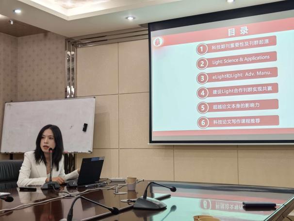 最后,张莹作总结发言。他表示,本次讲座是Light中心深入科研一线、满足本所科研人员和研究生发表高水平论文需求的重要举措之一。未来,Light中心将继续组织系列品牌培训讲座,走进本所全国重点实验室、各研究部室及研究生部,开展高水平科技论文写作培训、Light品牌期刊集群宣讲、投稿策略分享等交流活动。同时,Light中心将围绕本所主攻方向和新兴前沿领域组织专题研讨,积极挖掘本所重要创新成果,全方位提升科研人员和研究生发表高水平论文的能力和水平,加强其对本所主办期刊的了解、关注与支持,挖掘和助力更多重要学术成果在Light系列期刊平台发表与传播,共同推动光学领域的科技进步与学术繁荣。