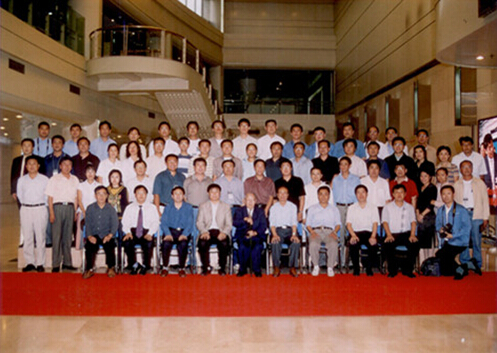 ICO国际光学年会上,所领导及部分会议代表、工作人员与王大珩院士合影留念