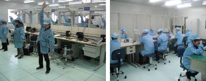 电装工艺中心员工工作强度大,任务压力重,为有效缓解压力、增强体质,保持续航能力,采取了多种措施予以改善:组织全员进行广播体操锻炼并自行设计了视频通话与广播系统,强制员工进行视力与颈椎保健;设置“爱岗敬业奖”、“谆谆善诱奖”、“关爱集体奖”等奖项评比,鼓励员工奉献集体、互帮互爱、和谐共进,以上活动营造了和谐融洽的工作氛围,让广大员工充分感受到了集体的关爱与凝聚力,从而构建起健康、和谐、奋进的团队文化。