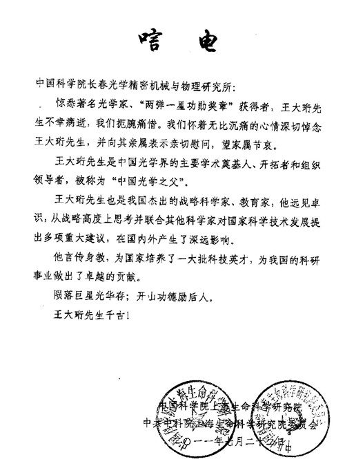 上一篇:中科院上海药物研究所党委书记成建军唁电