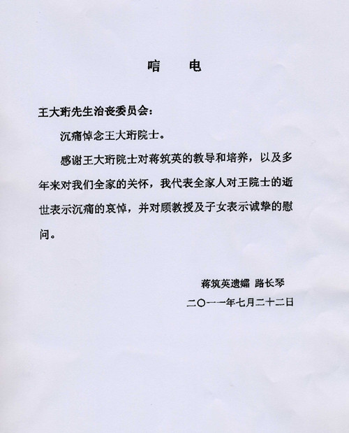 路长琴唁电