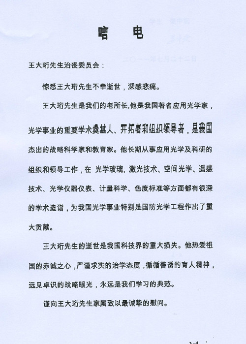 缅怀王大珩