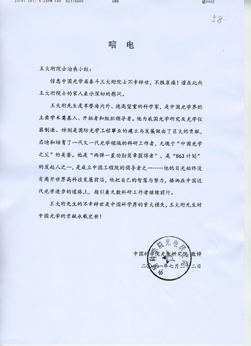 上一篇:中央政策研究室、国家科技部原《国家大型飞机发展战略研究》课题组唁电