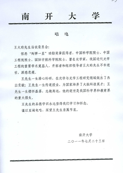 南开大学唁电