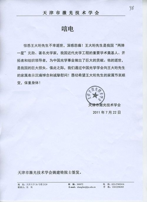 上一篇:中国国际光电博览会粟继红、杨宪承 唁电