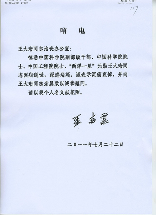 张高丽唁电