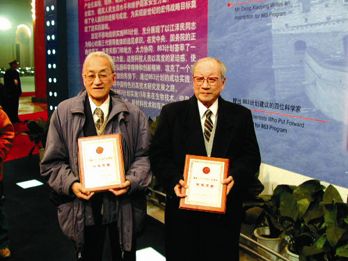 2001年2月19日,获863计划特殊贡献先进个人称号(左:杨嘉墀)
