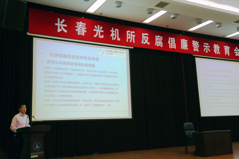 作为党的群众路线教育实践活动集中学习的一部分,9月10日下午,长春光机所举办反腐倡廉警示教育会。所党政领导班子、各部门正副职、课题负责人参加了警示教育会。会议由所监审室主任莫成钢主持。