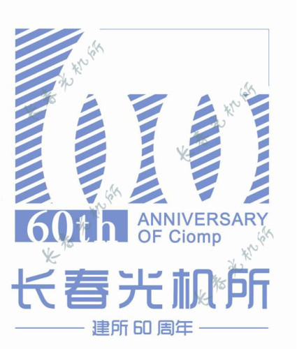 下方是长春光机所建所60周年的中英文,“CIOMP”为中科院长春光学精密机械与物理研究所的英文缩写。本作品将“60”融入到光学系统中去,白色部