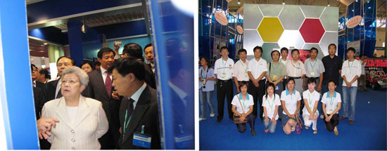 9月2日至6日,第二届东北亚贸易投资博览会在长春会展中心举行。期间,我所有10个项目参加了展出,它们分别为:奥普公司的ATM出钞模组、希达公司的LED大屏幕、新产业公司的激光器、方圆公司的指/掌纹仪、中新光电子有限公司的LED灯、长春医疗仪器公司的全自动生化分析仪、数显公司的光栅尺、联信公司的FTN液晶显示器件、图像室研制的激光电视、应光室研制的微型生化分析仪。 各级领导对我所的参展工作十分关心,在高科技电子馆为我们免费提供了展位;布展期间,省委书记王云坤来到我所布展现场,与布展人员亲切交谈;开幕式前,国务院副总理吴仪亲临我所展出现场。 展会期间,业内人士及商家对我所参展的产品给予了极大的关注,省市多家媒体对我所参展的产品做了报导;江苏省某副省长对数显公司的光栅尺很感兴趣,与公司的业务人员进行了交流与探讨;我所的激光电视,更是以其前沿的技术、清晰的画面及高保真的色彩,吸引着人们的眼球……此次参展的产品,充分展示了我所产品的高科技含量,同时也向社会展示了科研院所产业化的成果,起到了良好的社会效应。 此次展出由长光科技公司承办,科研三处协办。展出期间申德振副所长和宋志义助理到达展出现场,对我所参展工作人员表示慰问。 |