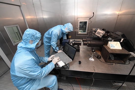 12月16日,在中科院长春光机所高光谱技术实验室,科研人员在低温室内检测设备性能。中科院科学传播局供图(新华社发)
