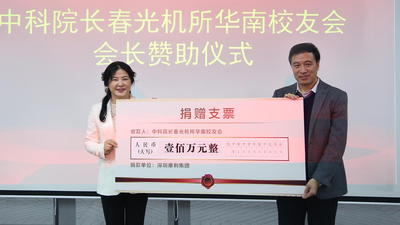 与会校友一致表决通过了《长春光机所华南校友会章程(草案)》、校友会第一届理事会成员名单以及校友会主要负责人名单。宣告长春光机所华南校友会第一届理事会和校友会管理机构正式成立。贾平、张涛、深圳市政协原副主席王学为和华南校友会会长王翠霞共同为校友会揭牌。贾平为华南校友会理事长马辉和王翠霞颁发证书。在捐赠仪式上,王翠霞为华南校友会捐赠启动经费一百万元。