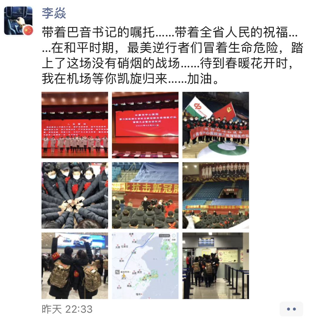 正如在出征前她接受长春广播电视台采访时说的:“我时刻在准备着,疫情就是命令,作为一名党员,组织需要我们去哪里,我就等着命令去哪里。”她没有什么豪言壮语,却以对处于水深火热中的武汉同胞的牵挂和对医疗事业的饱满热情,以朴实的行动践行一名共产党员、一名医生救死扶伤的铮铮誓言。