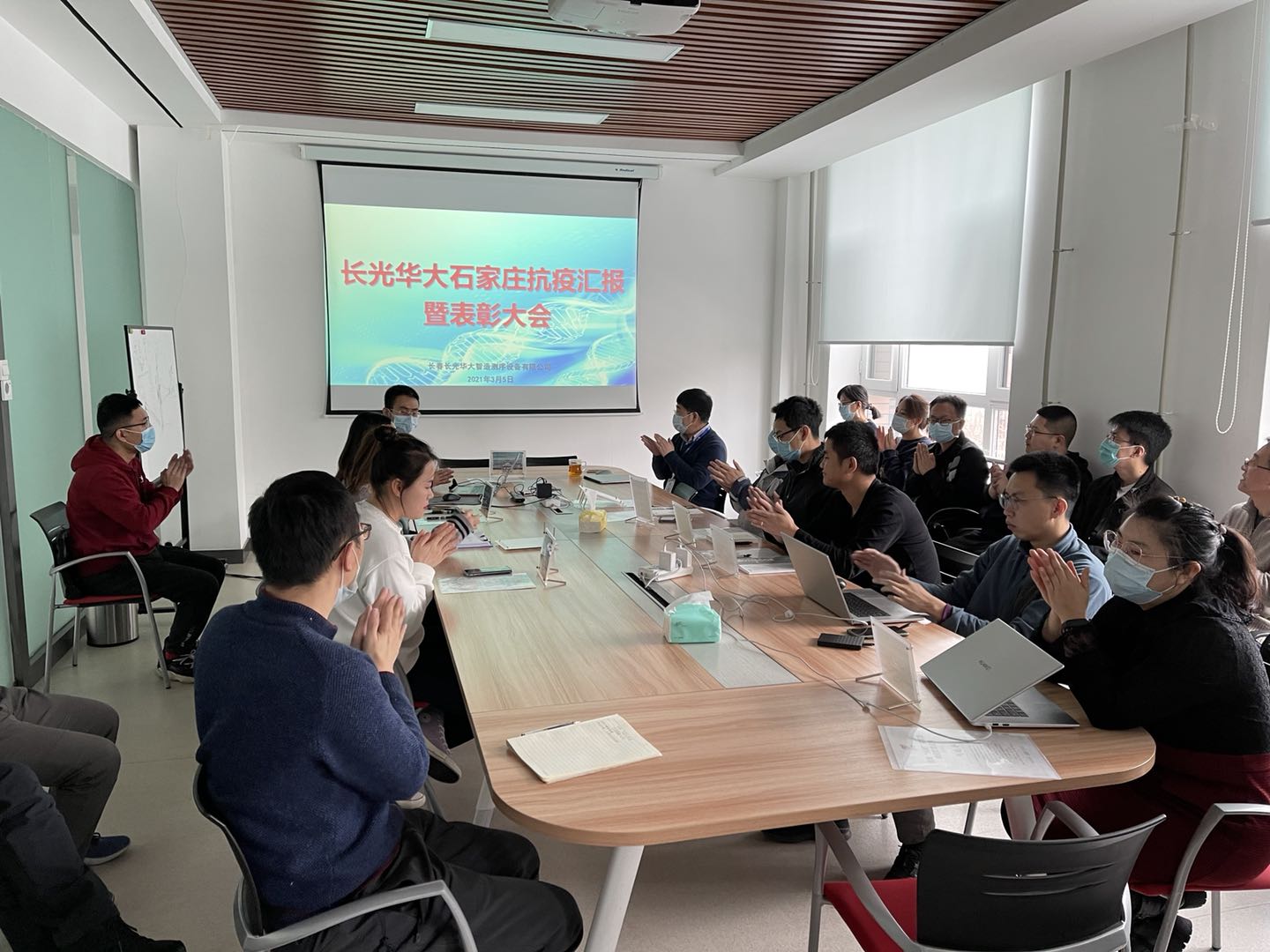 3月5日上午,长光华大在公司二楼会议室召开了石家庄抗疫工作总结表彰大会。