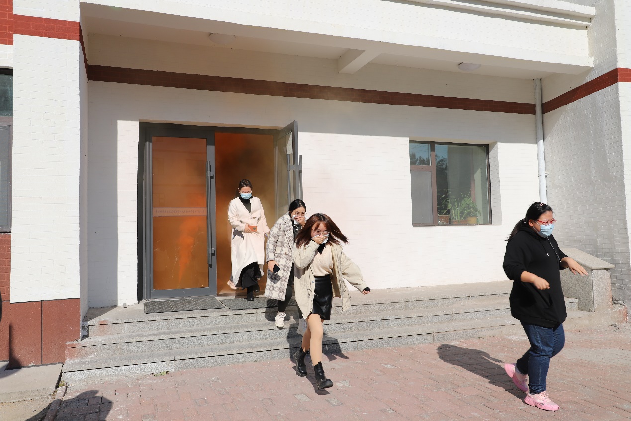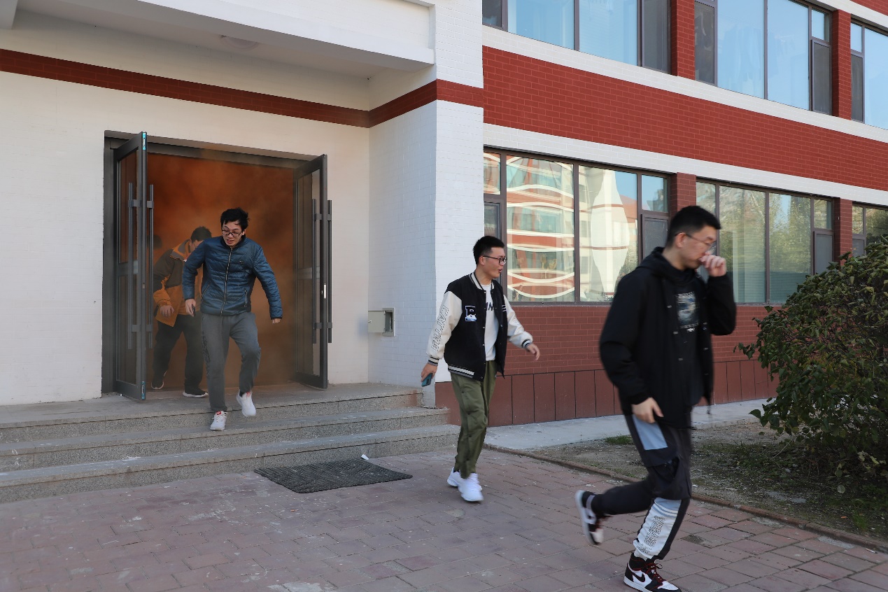 12时10分研究生公寓响起火警警报,拉开了疏散演练开始的序幕,全体工作人员按照预定的演练预案迅速进入各自岗位,同学们从所处位置的最近安全出口迅速有序离开公寓楼,到达安全地点,整个过程用时不超过2分钟。