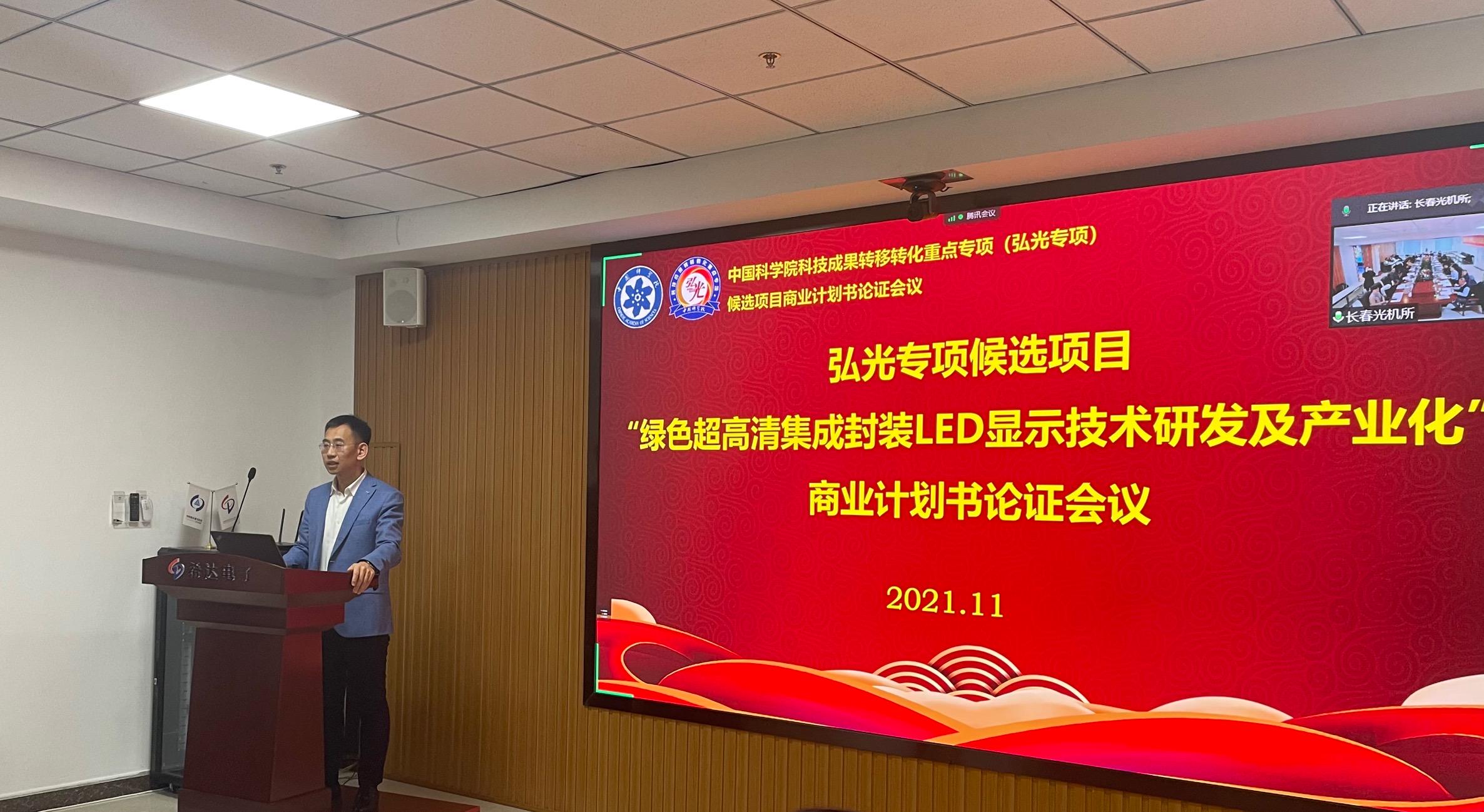 2021年11月16日,中国科学院科技促进发展局在长春希达电子技术有限公司组织召开了由中国科学院长春光学精密机械与物理研究所承担的中国科学院科技成果转移转化重点专项(弘光专项)“绿色超高清集成封装LED显示技术研发及产业化”项目可行性论证会。中国科学院科技促进发展局知识产权管理处处长田永生、副处长王兵、业务主管赵瑞雪,中国科学院长春光学精密机械与物理研究所所务委员孙守红、知识产权与成果转化处处长褚明辉、副处长吕宝林、业务主管吴娜,发光及应用国家重点实验室研究员张家骅、研究员宋航,长春希达电子技术有限公司董事长郑喜凤、总经理王瑞光,项目评审专家组及项目组成员参加了论证会。会议由田永生主持。