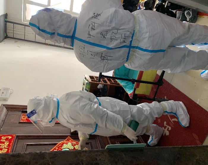 光机所志愿者突击队被分别编入核酸检测三组和四组,2组共肩负着7栋楼共计370余户的挨户上门通知、每家每户登记、人人核酸检测的任务。由于挨户通知极耗体力,组里征求意见看谁愿意承担这项工作,闫肃同志毫不犹豫的举起手。为了能够争取时间,她每次坐电梯到顶楼后,直接跑步到下一层,就这样一层一层、一单元一单元、一栋一栋的跑完了200余户。为了方便居民检测,核酸检测点每一栋楼检测结束后,需要把桌子与检测物品再搬到另一栋楼下,在初春寒风中,52岁的王广彦同志前后奔波,抢先搬走桌椅等沉重物品,让组里医护人员可以轻装上阵。终于历时5个小时,完成了900余人的集中核酸检测。王梦迪同志作为小组的核酸登记人员,不仅快速的完成了200余户的登记,同时对家中有老人或病人无法下楼做核酸的家庭进行了详细记录,在集中检测结束后,继续与医护人员一起,为小区16户特殊人员进行上门核酸检测服务,确保不落一人的完成任务。