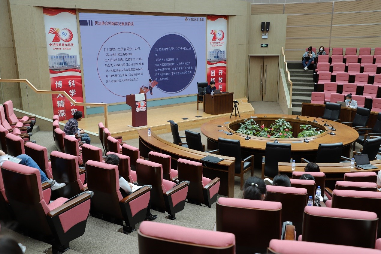 5月25日下午,长春光机所邀请北京盈科(长春)律师事务所股权高级合伙人、本所法律顾问郑博律师做客“长光大讲堂”,做主题为《民法典时代下合同动态法律风险管控》讲座。
