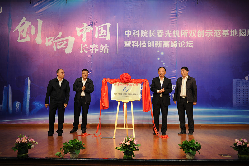随后,吉林省发展研究中心主任李寅权,长春市委常委、管委会主任李忠斌,长春经开区管委会主任何泉秀,长春光机所所长贾平上台共同为中科院长春光机所双创示范基地揭牌。