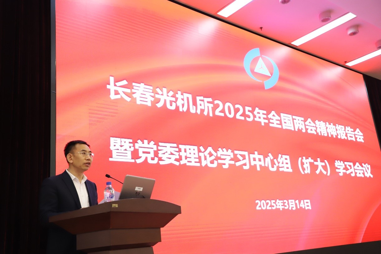 3月14日上午,长春光机所2025年全国两会精神报告会暨党委理论学习中心组(扩大)学习会议在研发大厦东侧报告厅召开,十四届全国人大代表、中国工程院院士、长春光机所所长张学军传达了习近平总书记在十四届全国人大三次会议、全国政协十四届三次会议期间的重要讲话精神和全国两会精神。所务成员、党委委员、纪委委员、院士、正副总师、学术委员会正副主任、部门正副职及下设研究室正副主任、所属基层党组织书记、各民主党派负责人、管理与公共支撑部门全体工作人员参加会议。党委副书记、副所长孙守红主持会议。