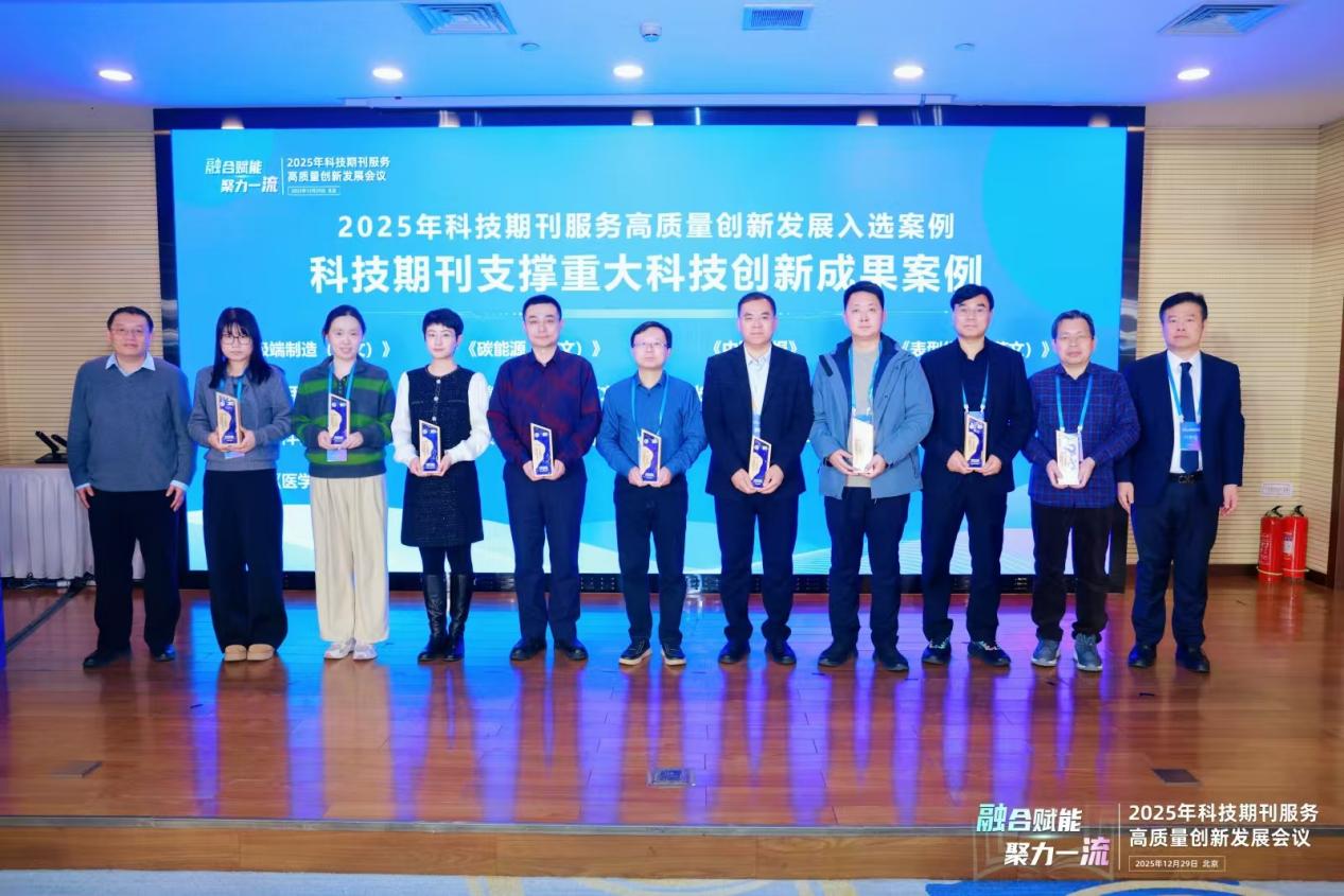 2025年12月29日,由北京市科学技术协会指导、中国高校科技期刊研究会主办的“融合赋能,聚力一流:2025年科技期刊服务高质量创新发展会议”在北京隆重召开。在此次行业盛会上,中国科学院长春光机所Light学术出版中心表现亮眼,申报的5项2025年科技期刊服务高质量创新发展案例全部入选。具体包括:《Light : Science & Applications》入选科技期刊驱动产业创新发展案例(全国入选12例);《eLight》入选科技期刊支撑重大科技创新成果案例(全国入选13例);《Light : Advanced Manufacturing》入选科技期刊国际影响力提升案例(全国入选19例);《光学精密工程》入选科技期刊助力地方发展案例(全国入选11例);Light中心主任张莹入选科技期刊人才建设案例(全国入选9例)。