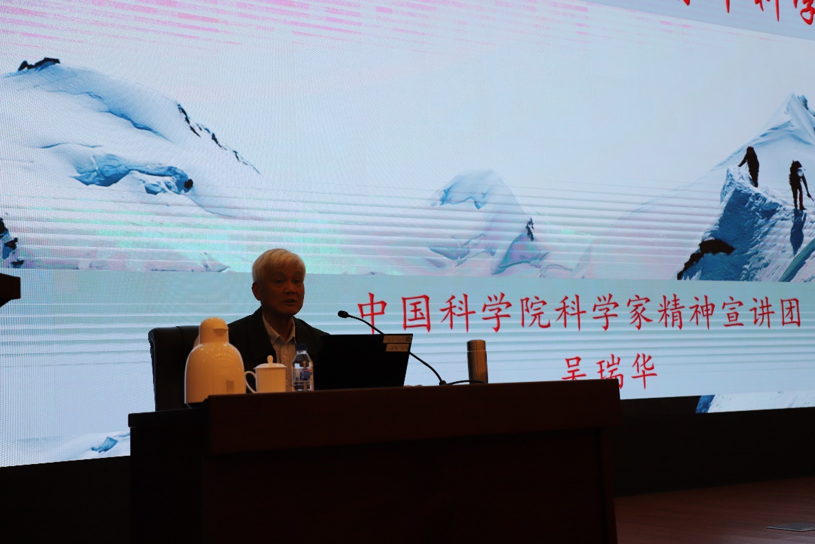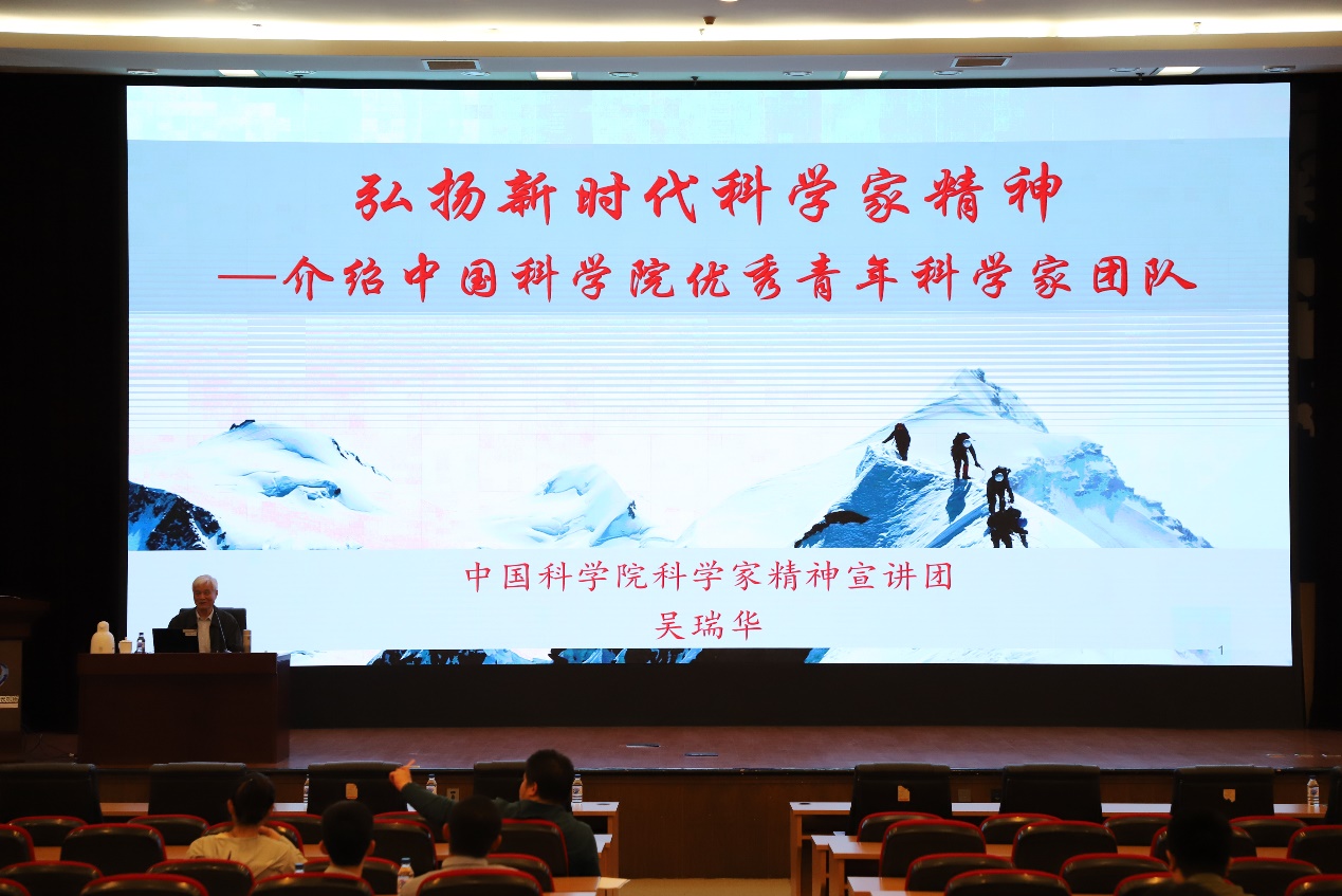 吴瑞华的报告以中国科学院优秀青年科学家的先进事迹为切入点,讲述了随着我国科技事业的蓬勃发展,新一辈年轻科学家传承和发扬老科学家们勇攀高峰、艰苦奋斗的事迹和精神。报告对爱国、创新、求实、奉献、协同、育人的科学家精神作了系统阐述,并鼓励青年们,要做新时代的追梦人,用实际行动为祖国和人民做出卓越贡献。