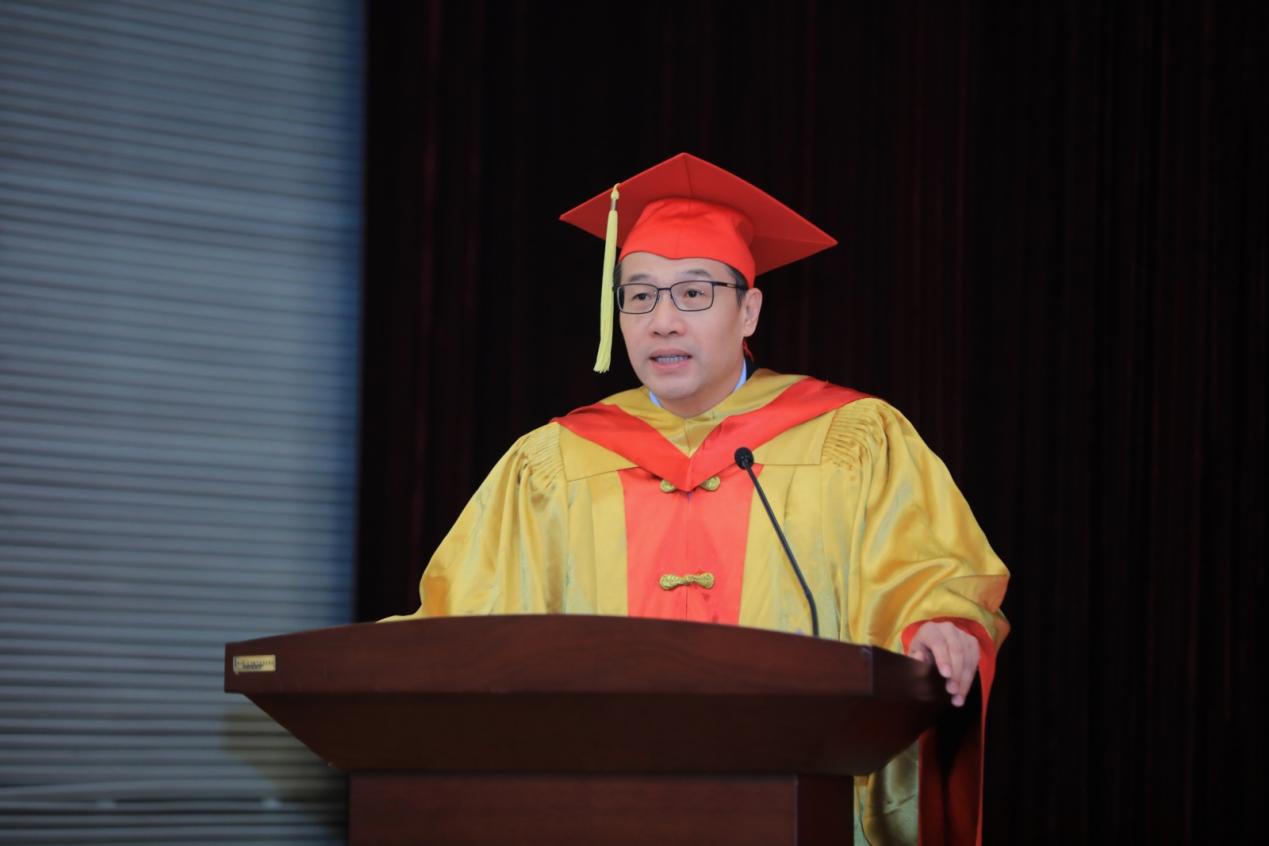 中国科学院大学优秀导师、研究员徐振邦作为导师代表发言,他结合自己在科研教学的经历,为即将扬帆起航的毕业生们送上了宝贵的建议和真诚的祝福。他强调了爱国情怀的重要性,鼓励学生们保持积极思考,学会坦然面对困难,真诚对待他人,加强体育锻炼,为祖国健康工作50年。