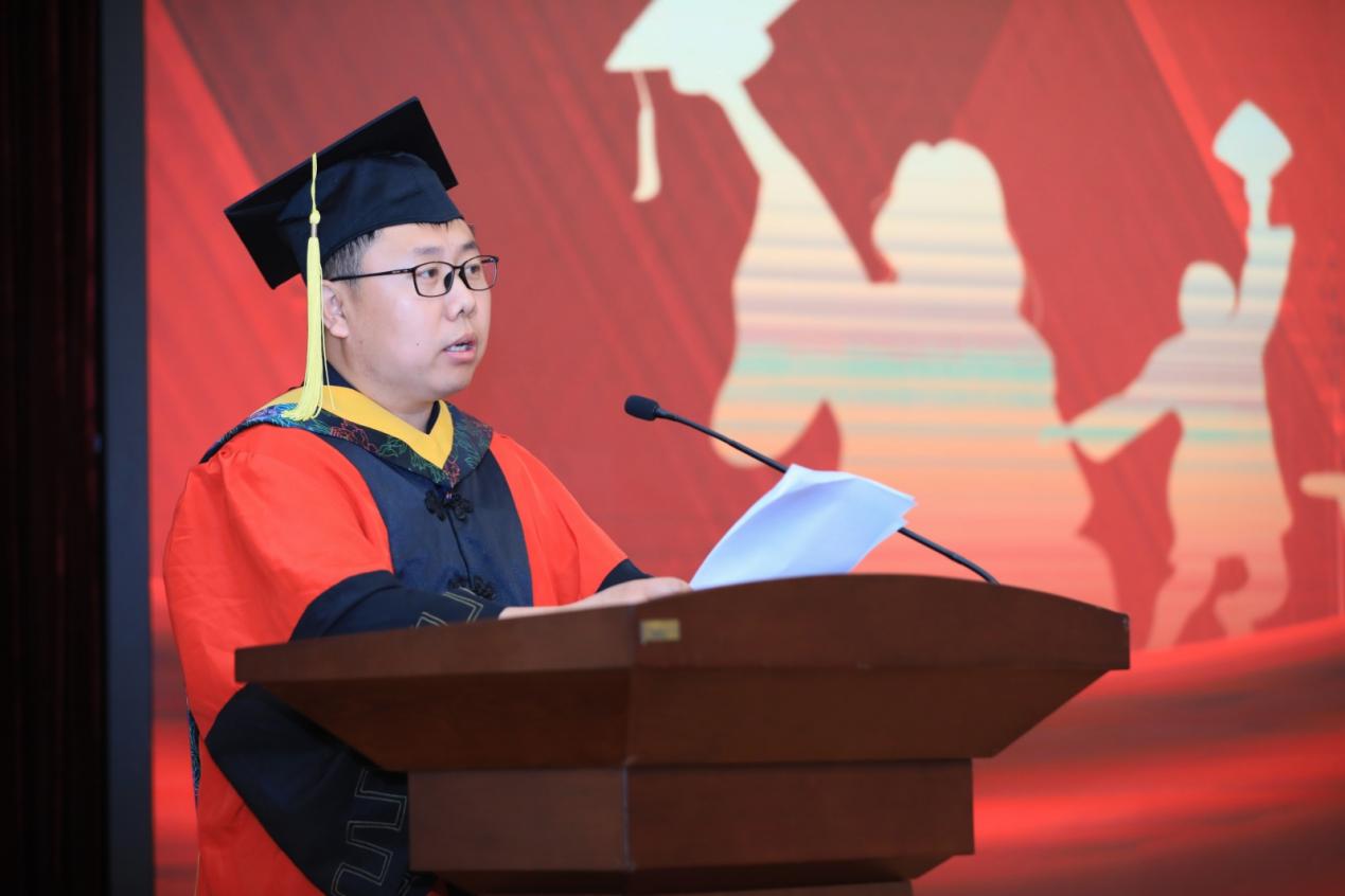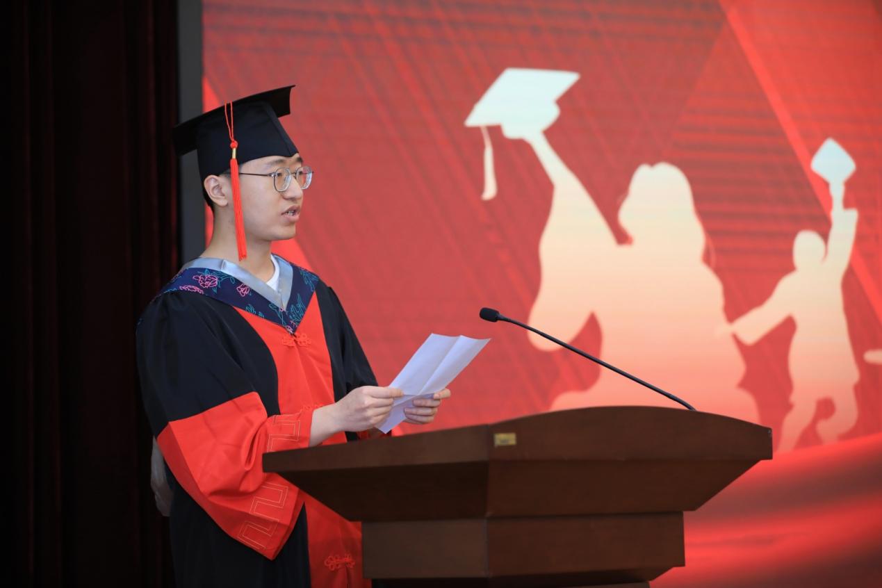 优秀毕业生代表、以第一作者在《nature》期刊发文者范延东同学分享了他在学习生活中的收获与感悟。他说,面对未来可能的机遇和挑战,我们要保持一颗谦虚、勇敢、进取的心,不断学习,砥砺前行。他相信,只要我们坚定信念、勇攀高峰,就一定能够创造出更加辉煌灿烂的人生。