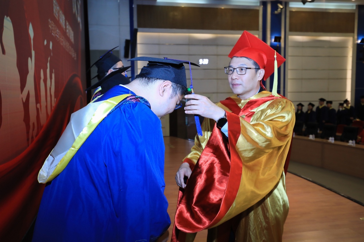 毕业典礼进行最激动人心的时刻,由张学军、金宏为毕业生一一拨苏正冠,标志着同学们从此开启未来新的征程。