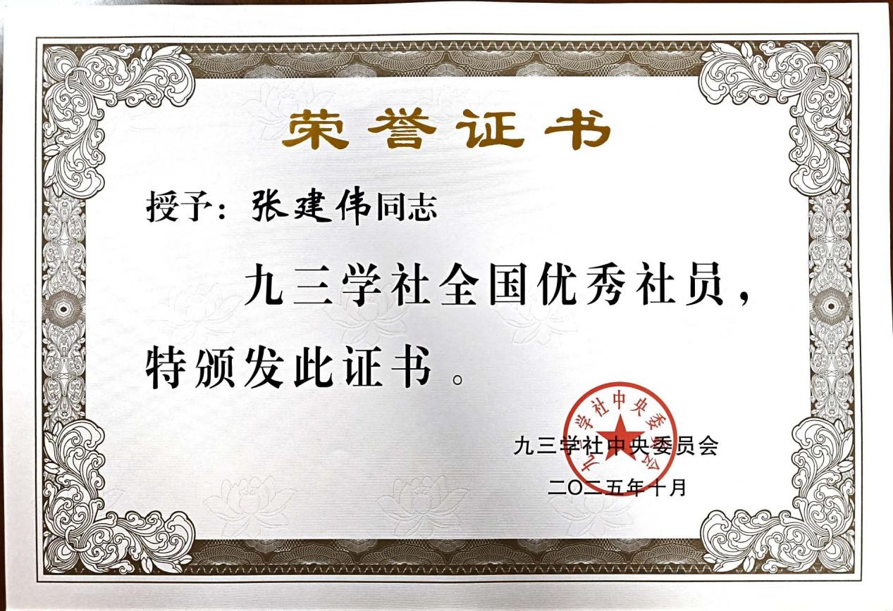 近日,九三学社中央开展创建八十周年先进典型表彰,九三学社中国科学院长春光机所委员会荣获“全国优秀基层组织”称号,主委张建伟荣获“全国优秀社员”称号。