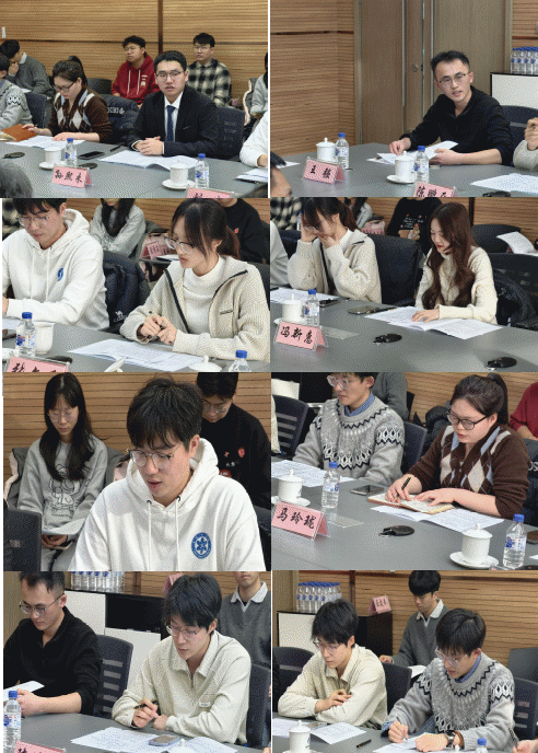 各位学生代表结合调研情况,依次汇报了研究生思政工作的现状与思考。他们普遍认为,思政工作要“双管齐下”:既要注重思想引领,也要解决实际困难。心理健康保障工作要强调“预防先于干预”,研究生会和学生党支部应发挥表率作用,通过举办高频次、低门槛的文体活动,为同学们提供合理、健康的压力释放渠道。希望领导加强关注学生的思想动态,对于党团活动能提供更多的经费支持等。