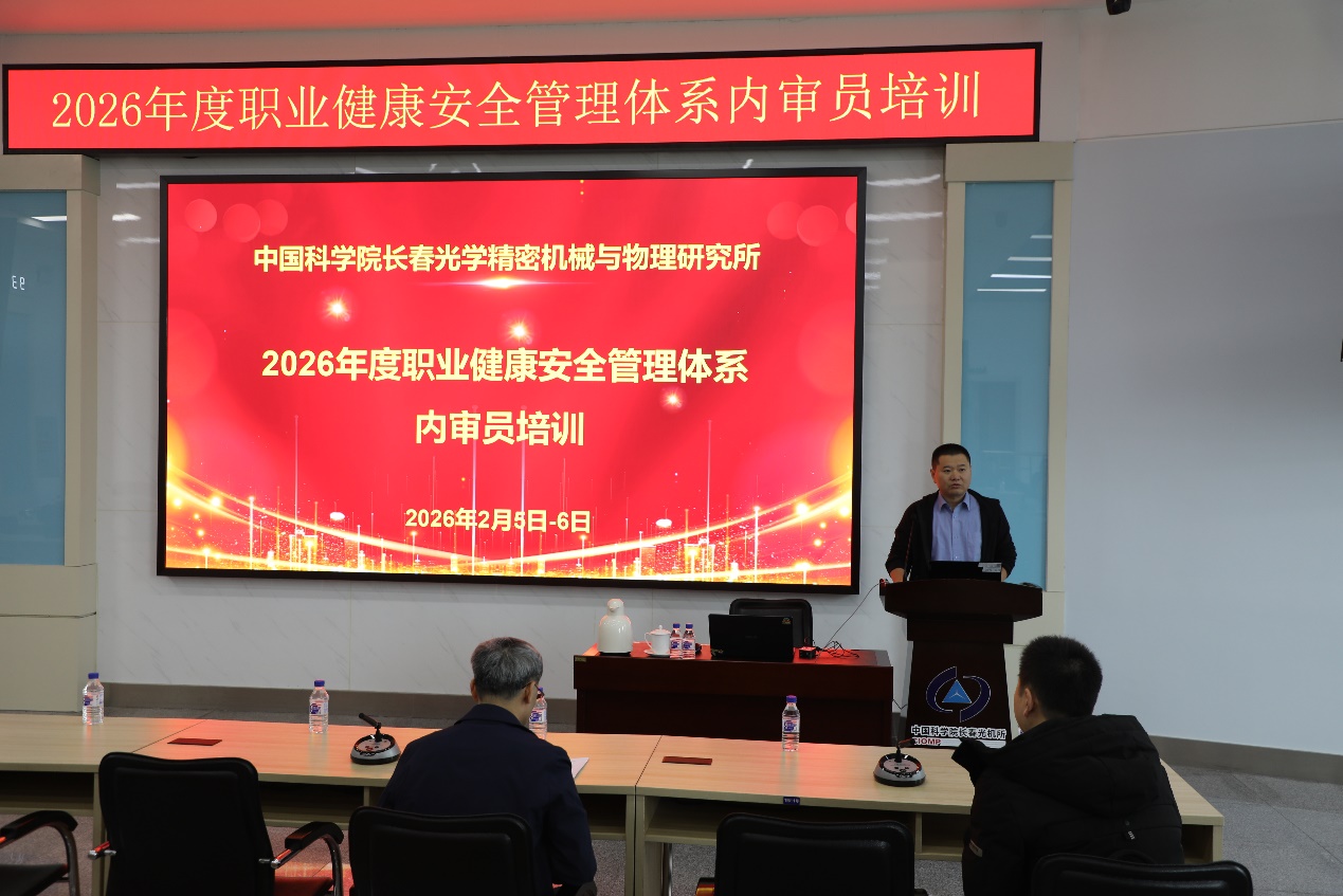 为做好长春光机所职业健康安全管理体系持续运行和改进工作,2月5日-6日,长春光机所举办2026年度职业健康安全管理体系内审员培训班。所属各部门安全员、职业健康安全管理体系工作人员等90余人参加了培训班学习。长春光机所党委副书记、纪委书记、职业健康安全管理者代表孙焕参加了开班仪式,培训会由党委办公室安全专员陆海龙主持。
