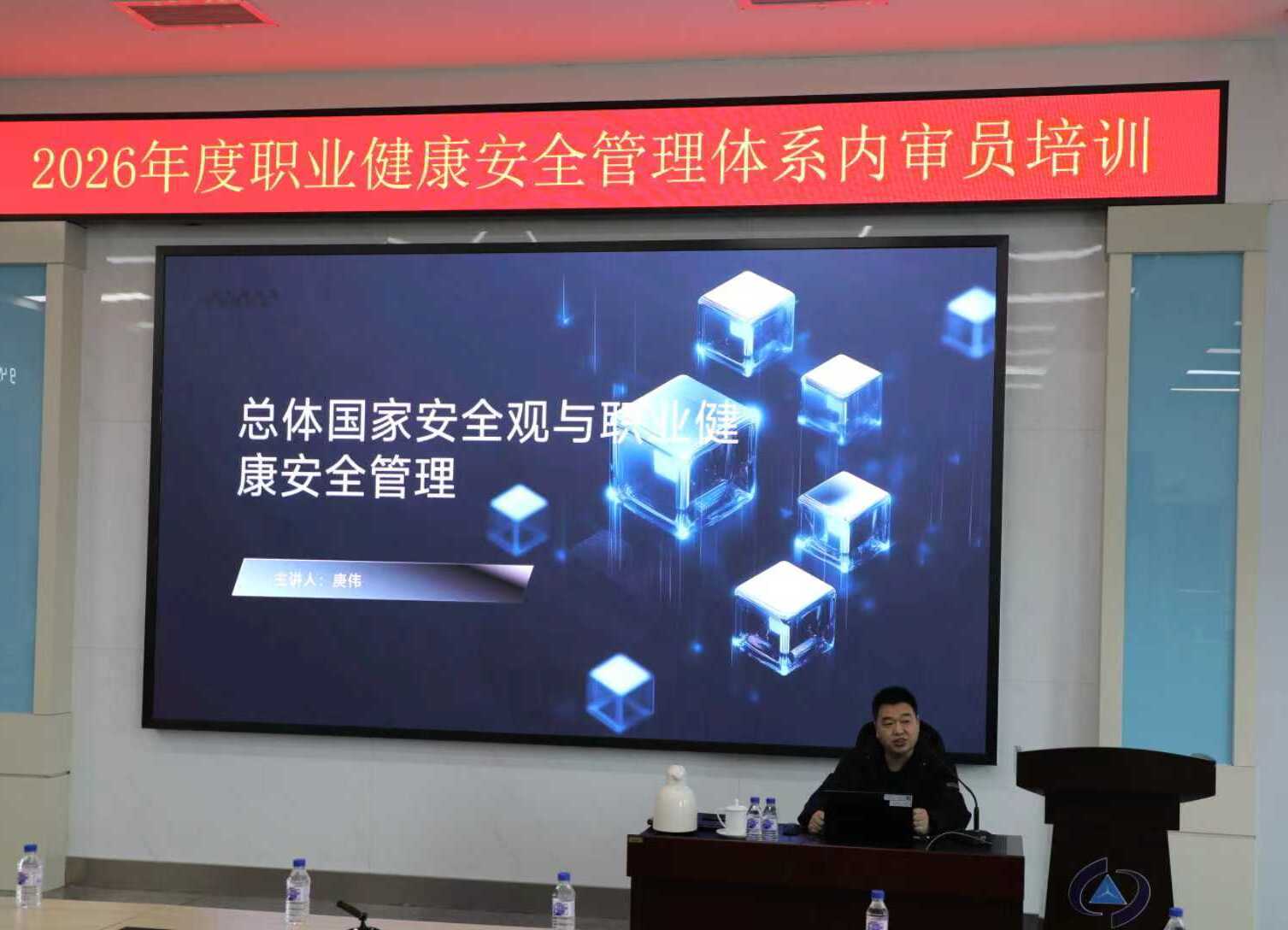 培训会议最后,党委办公室王磊做了《2025年度职业健康安全管理体系及安全工作汇报》,回顾了2025年度职业健康安全管理体系的建设过程及重要意义,明确了2026年度将要开展的体系重点专项工作,并表示希望体系工作与安全管理工作可以深度、有效契合,以减量全所安全风险,提升全所本质安全。